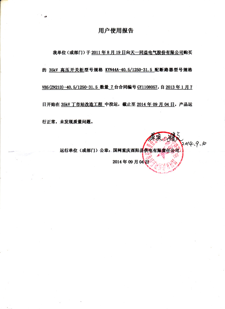 高压开关柜业绩