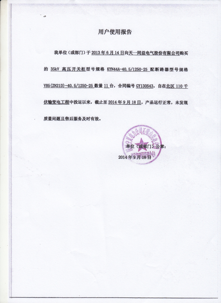 真空断路器业绩